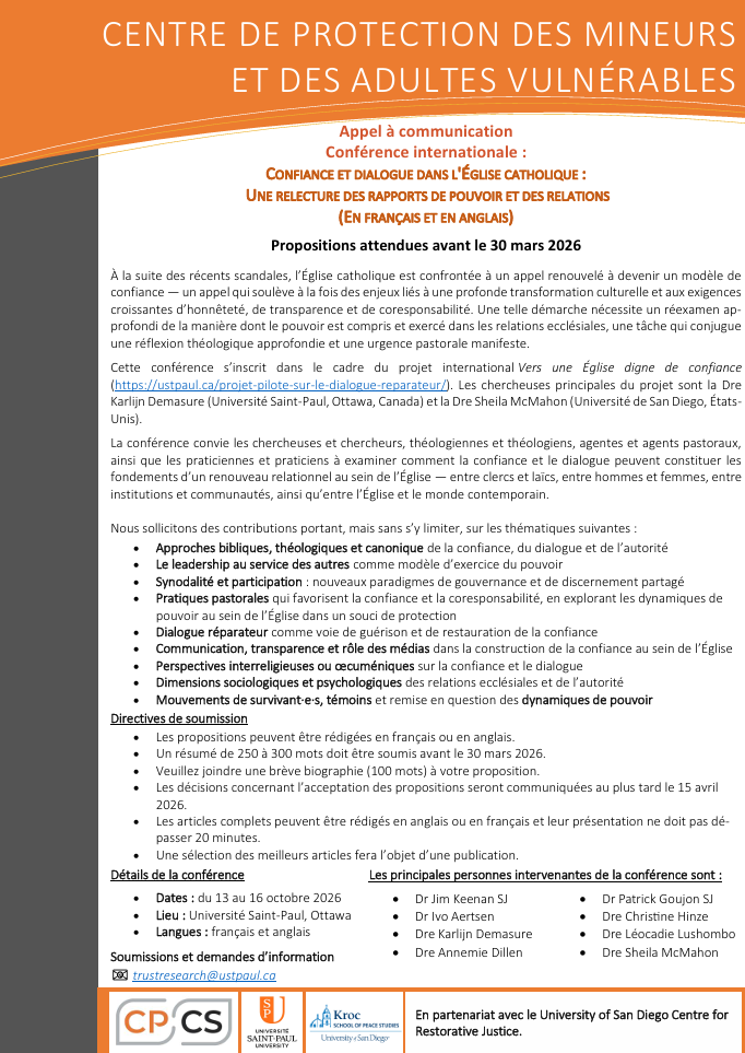 Cette conférence s'inscrit dans le cadre du Projet international Vers une Église digne de confiance